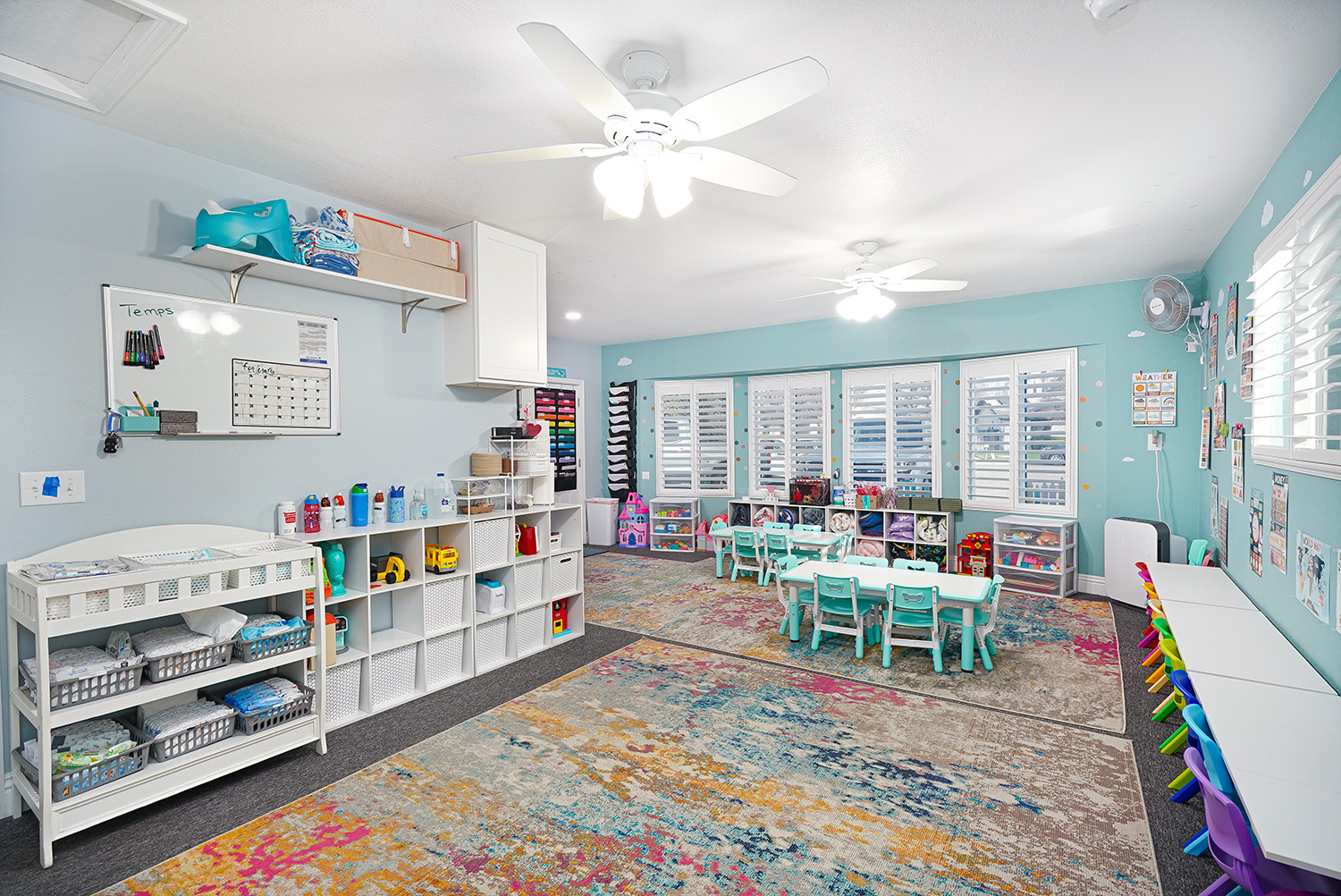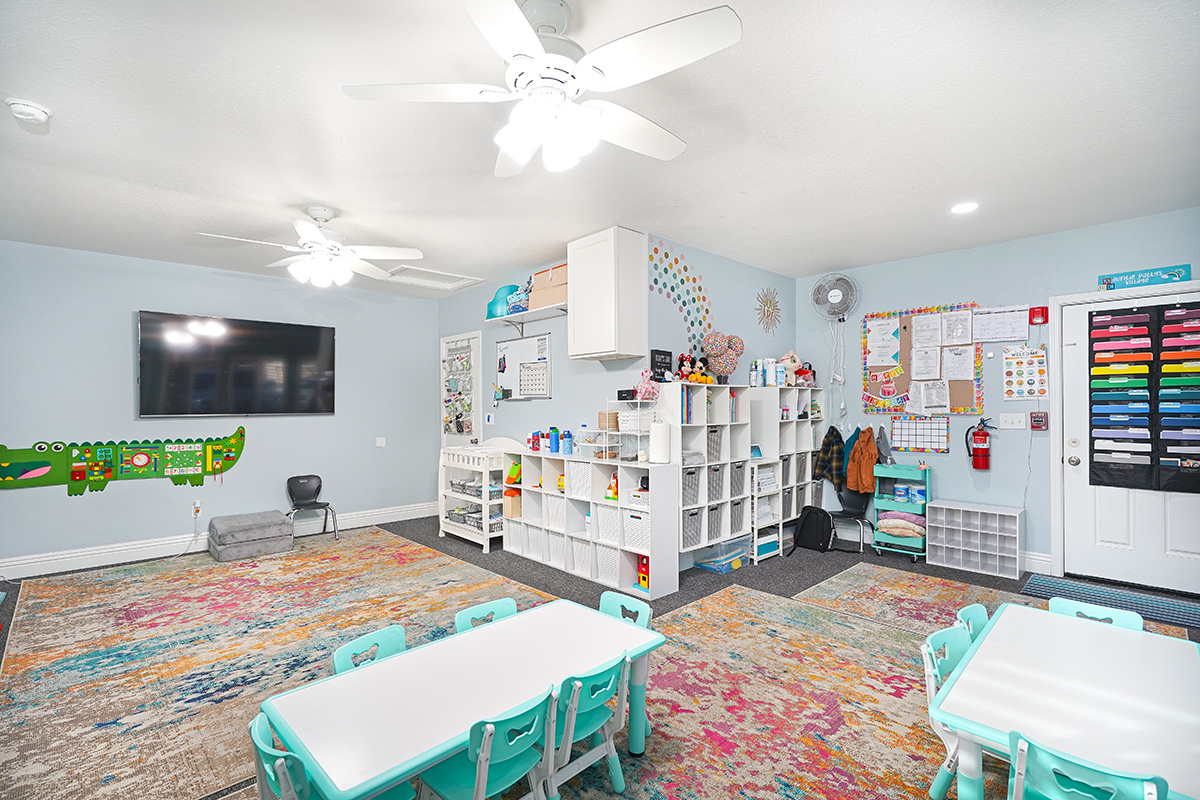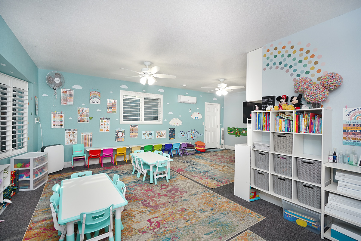 The converted garage is now a dedicated daycare designed around children’s daily routines. Bright, finished, and purpose-built for learning and play, the space allows the daycare to function safely and independently, while giving the main home its living room back.
