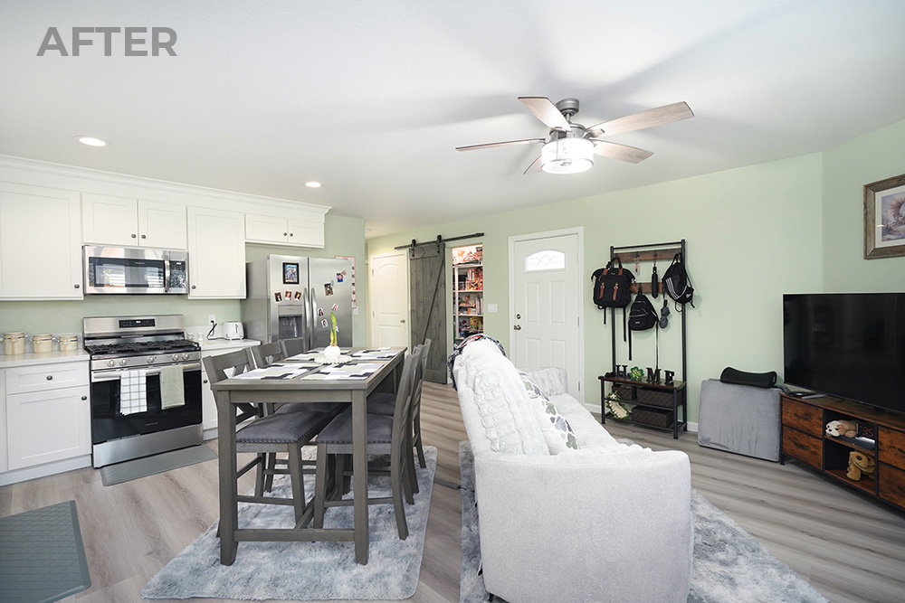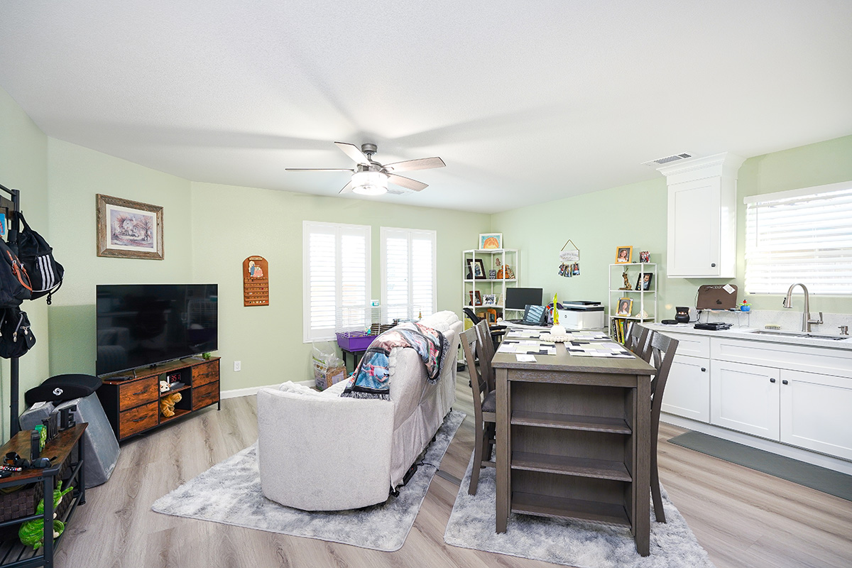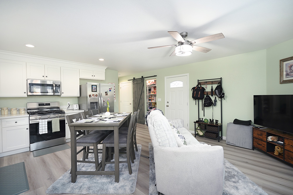 Inside, the ADU functions as a complete apartment with a full kitchen and living area. The layout supports everyday routines and independent living, giving Patty’s aunt a comfortable space of her own.