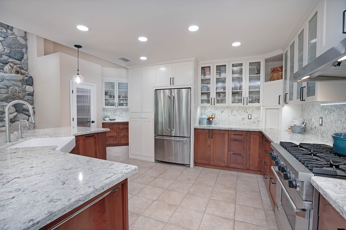 The remodeled kitchen feels intentional and inviting, supporting hosting with ease. It now feels like a destination within the home, not a stopover.